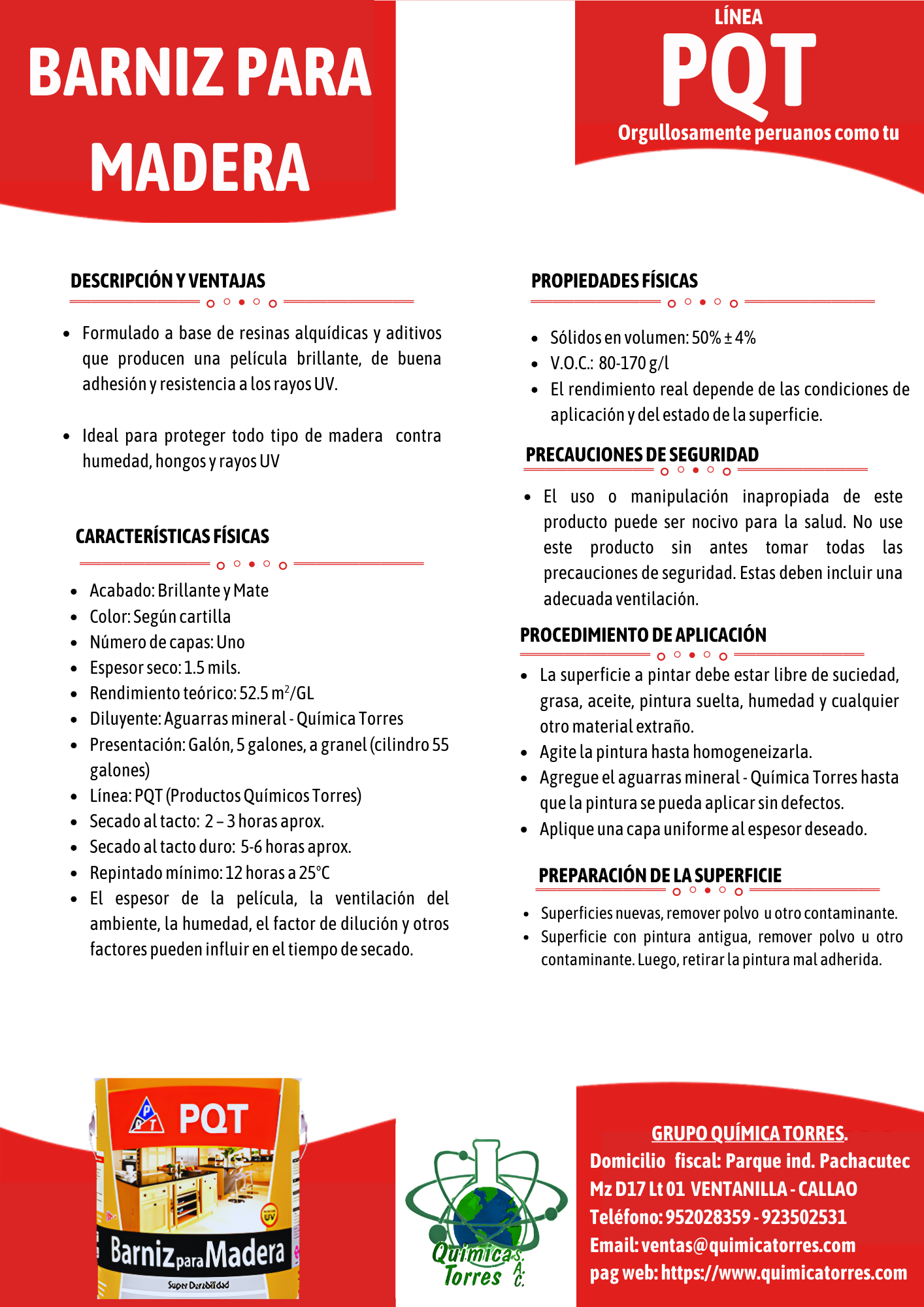 Wood varnish - Quimica Torres SAC - PQT Line